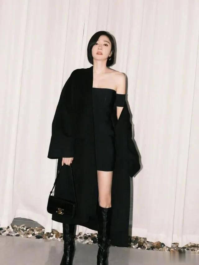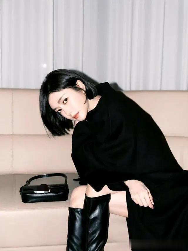 专业配资平台秦岚剪了波波头短发气质大变! 抹胸裙+长筒靴, 时髦高级又洋气