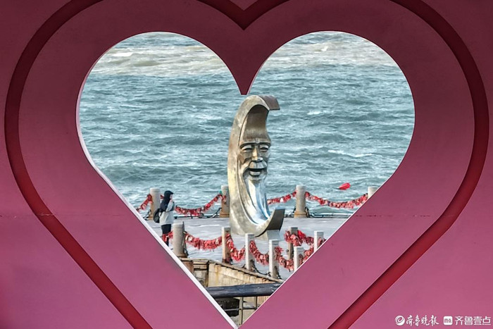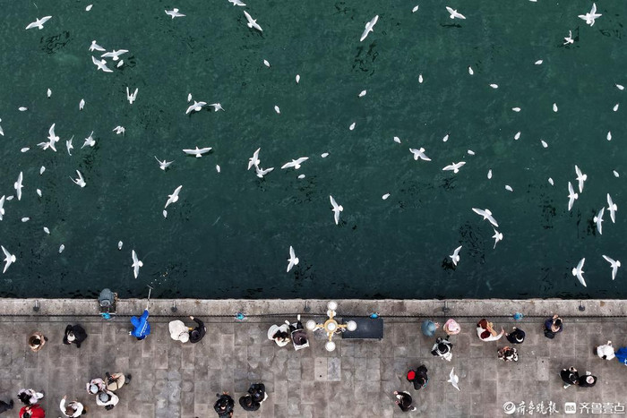 冬日的烟台月亮湾,潮涌澎湃,海鸥翩跹,尽显滨海冬韵。