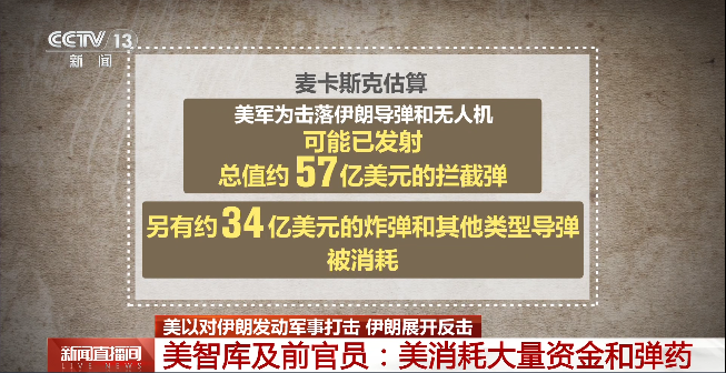 另据美国国防部前审计事务官员伊莱恩·麦卡斯克的估算,最初4天的成本已接近110亿美元。其中包括自去年12月起从美国和欧洲向中东调派10余艘军舰和约百架军机的成本,但不包括薪资、训练以及动用在中东的美国国家资产的成本。麦卡斯克估算,美军为击落伊朗导弹和无人机可能已发射总值约57亿美元的拦截弹,另有约34亿美元的炸弹和其他类型导弹被消耗。