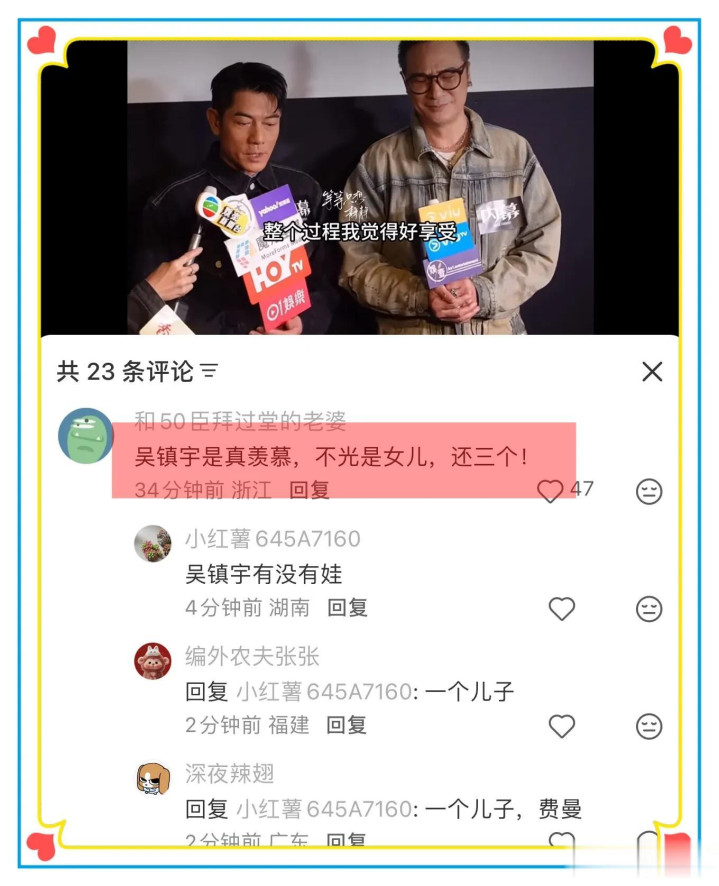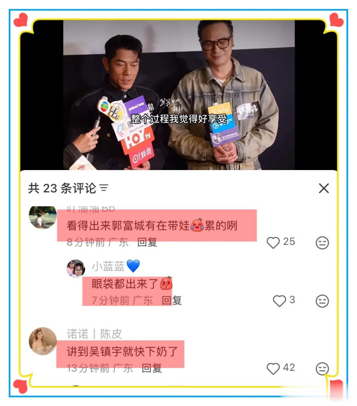 在活动上,媒体采访了刚刚喜得千金的郭富城,郭富城表示每天工作结束回到家看到那么可爱,那么萌的宝宝,心都融化了,再苦再累的工作都不觉得累,都值得,言语中满满的幸福感,看得出来天王也是女儿奴,回家也带娃,网友称赞郭富城是一位好爸爸,郭富城说自己是女神之家,家里四个女神,他很幸福,可把旁边的吴镇宇羡慕坏了!