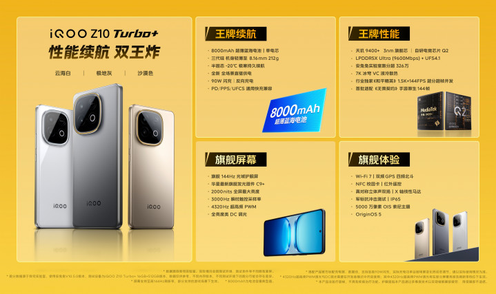 iQOO Z10 Turbo+国补后12GB+256GB版低至1614元,核心卖点是8000mAh超大电池和天玑9400+芯片,搭配华星C9屏幕和索尼LYT-600主摄,性价比拉满。